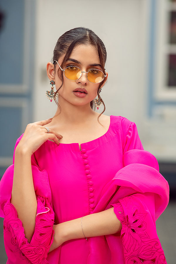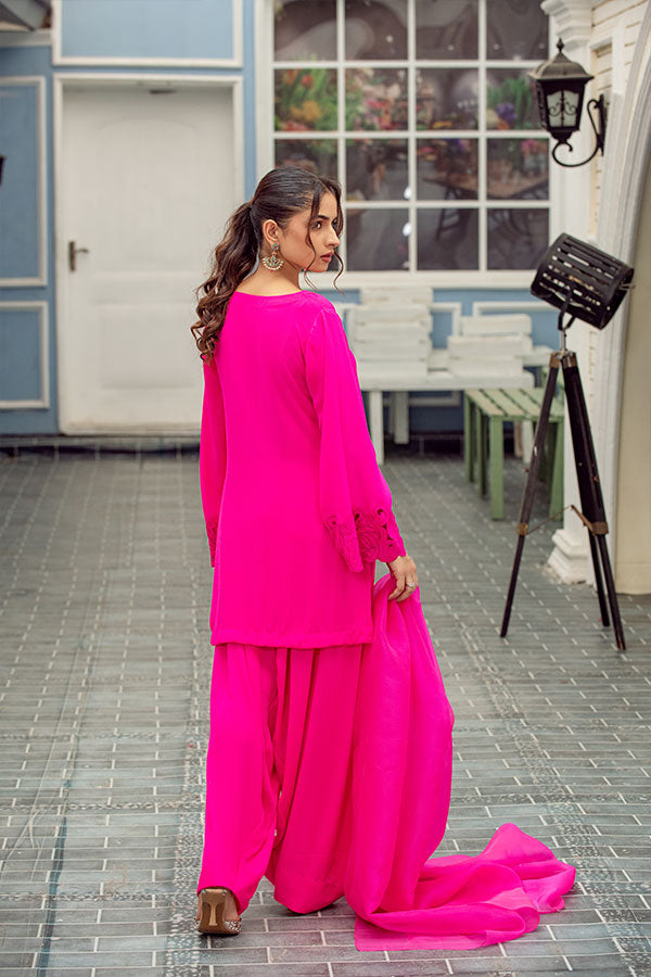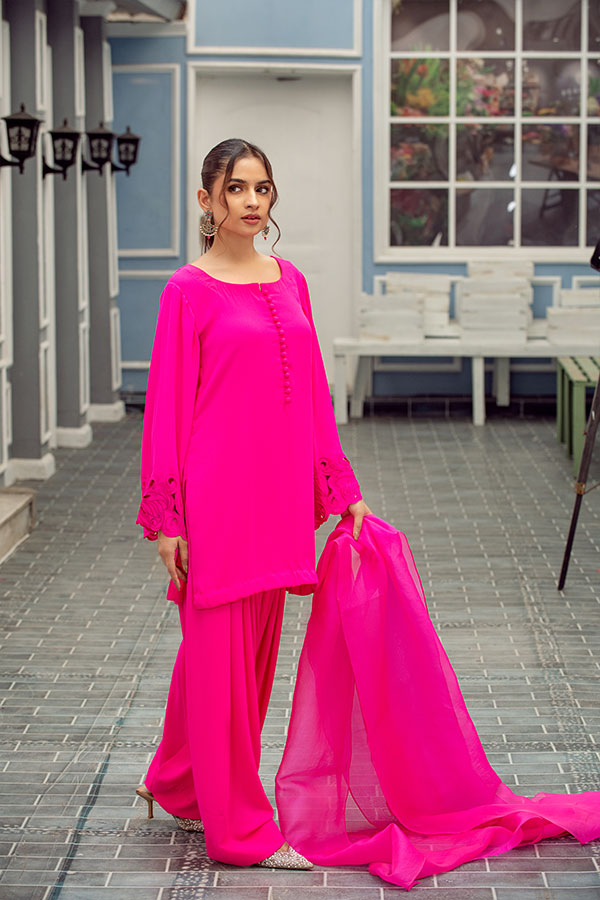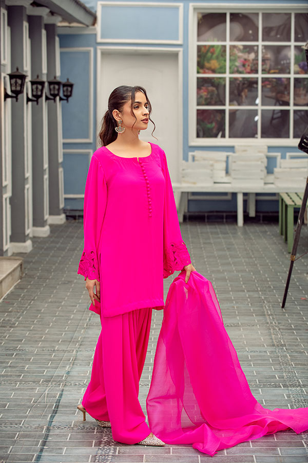 Fuchsia Charm – Cutwork Chiffon Ensemble
