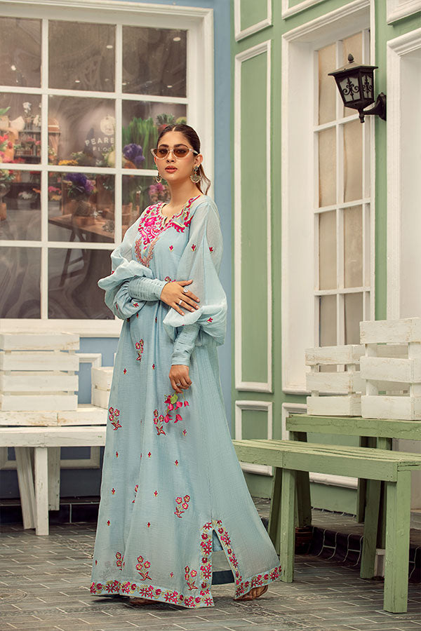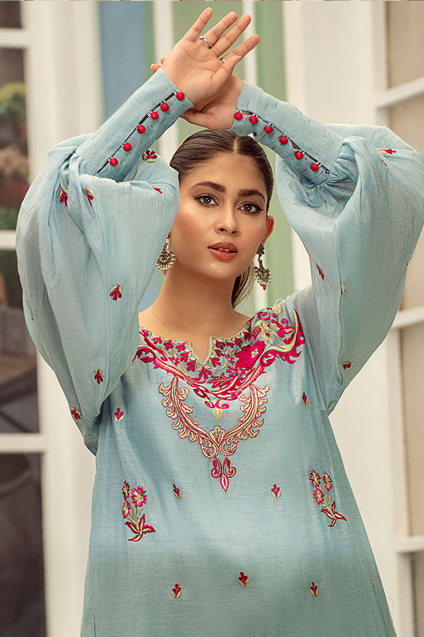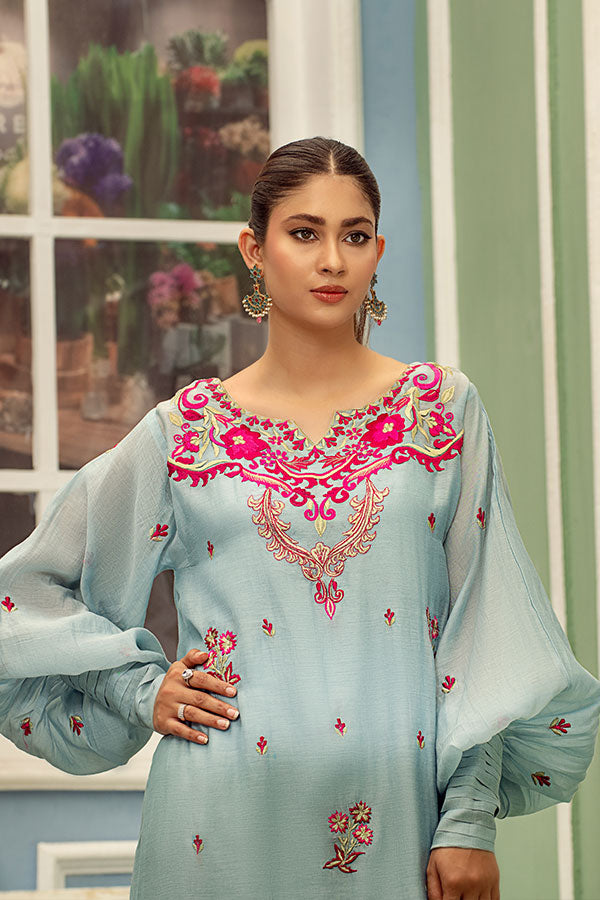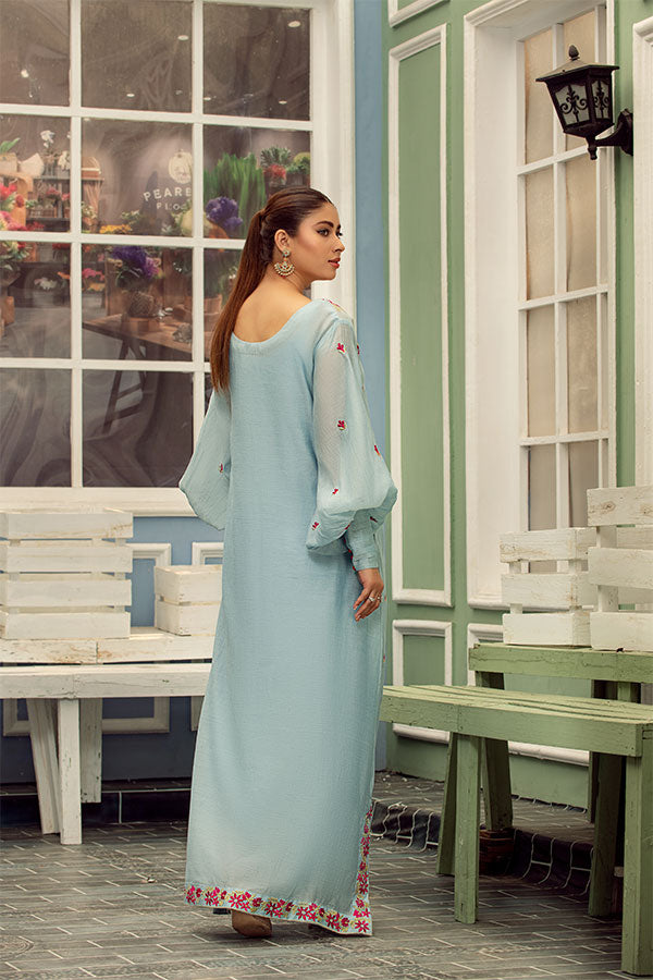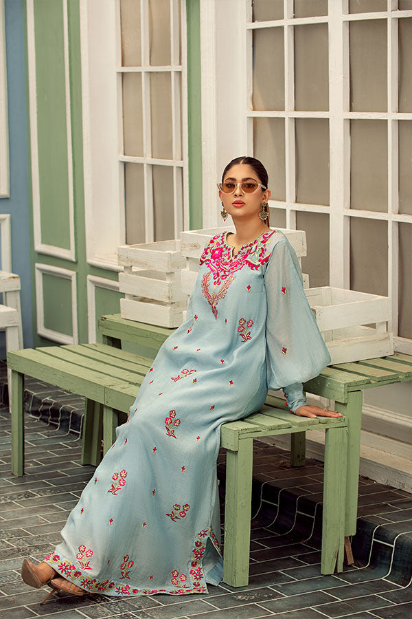 Ice Blue Silk Lawn Kaftan Set