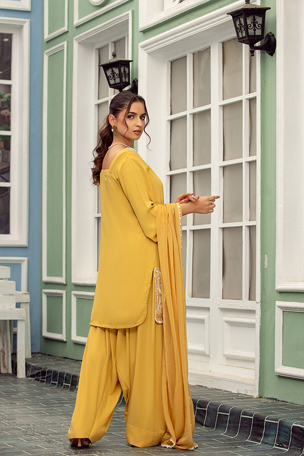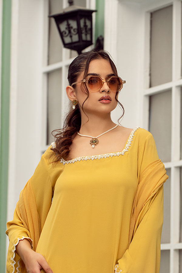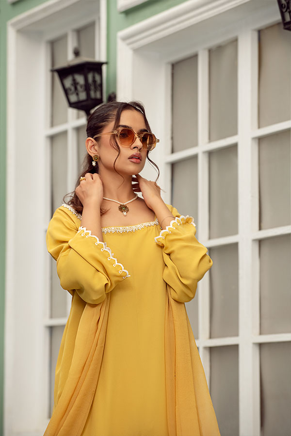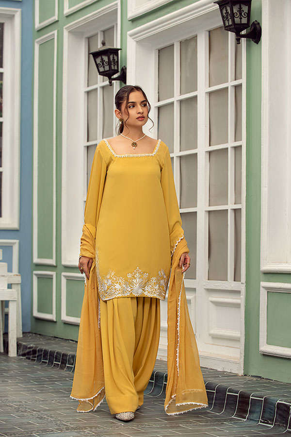 Mustard Elegance – Embroidered Chiffon Ensemble